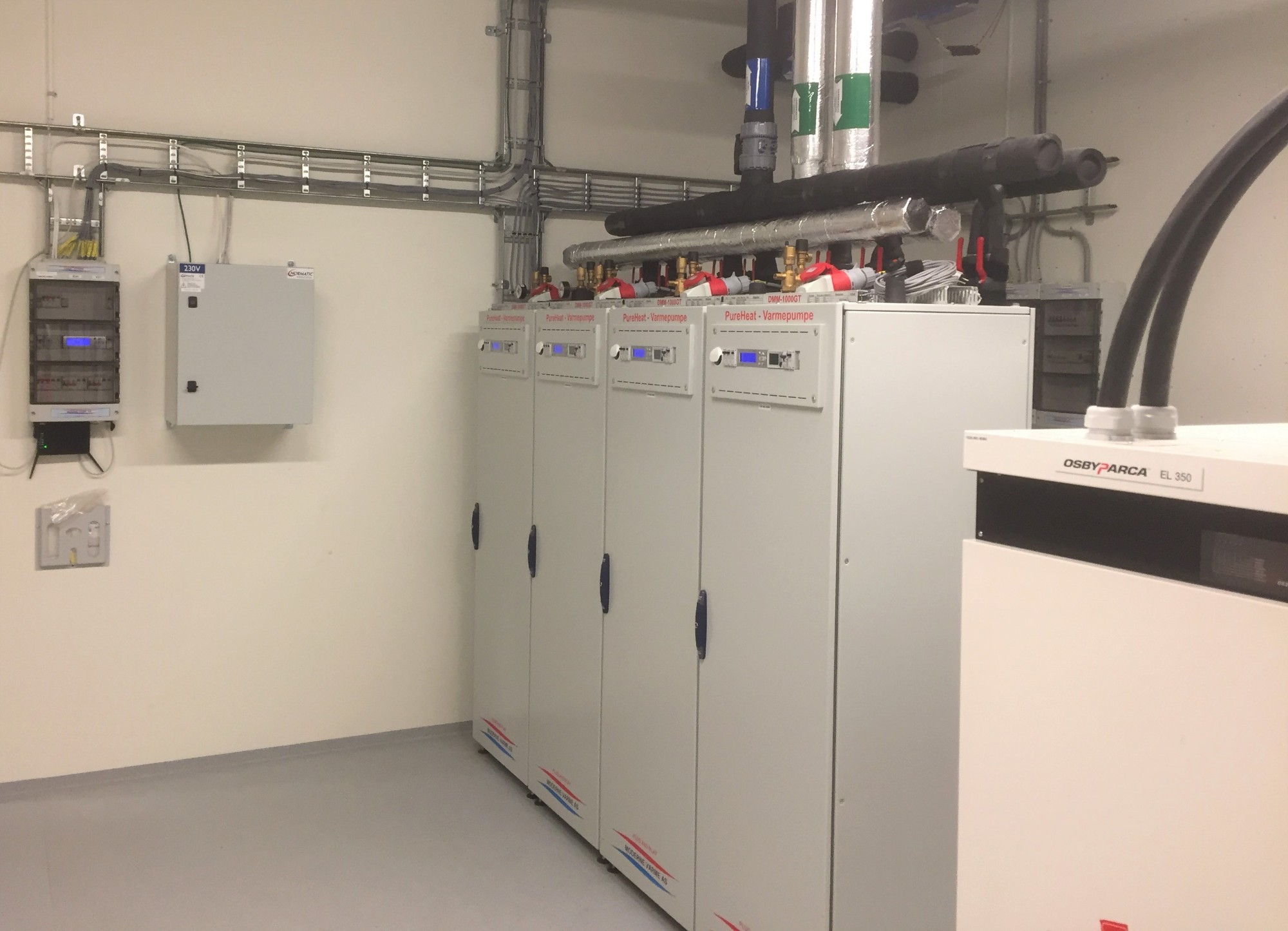 Ombyggingen av energisentralen ble gjort på kun noen få dager. Med våre prefabrikkerte Stokkskap kunne man raskt og effektivt etablere en ny og moderne energisentral basert på varmepumpeenergi.